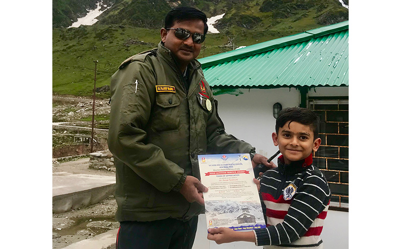 The little champion is the role model of outstanding Courage, Bravery, Risk, Patriotism and a live example of Social Services in mountains under subzero temperature & extreme cold conditions. In minus temperature he served more than a month and provided lifesaving services like serving water, food, medicines, daily route tracking guidance from Kedarnath to Bhairav Temple (12,500 Feet) to the pilgrimage. He played an extraordinary role in connecting people under subzero temperature and extreme adverse weather conditions. He goes extra miles to serve the humanity.