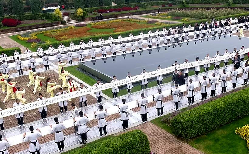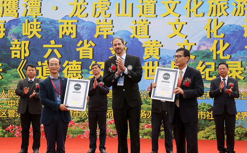 2018年11 月 22 日,中国江西省鹰潭市龙虎山风景名胜区管委会与江西省毛体书法协会,在龙虎山景区秀美靓丽的花语世界中,共同举办 2018 年世界最长的毛体书法《道德经》长卷世界纪录认证活动。省委常委、统战部长陈兴超,省政府副省长吴忠琼,省政府副省长胡强前来参与。市委书记郭安致开幕辞,省台办主任邓保生、中华炎黄文化研究会常务副会长兼秘书长张希清、中国道教协会会长李光富分别讲话,市长于秀明主持。