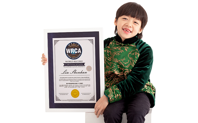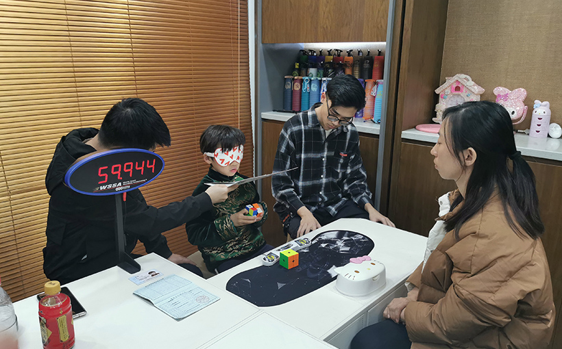 Lin Shenhan (China, b. 21 April 2014) successfully solved two 2x2x2 Rubik's Cubes blindfolded in 1 minute 10.99 seconds in Nanning City, China, on 27 November 2020. Reviewed by the WRCA, Lin Shenhan broke the world record for the youngest person ever to solve two 2x2x2 Rubik's Cubes blindfolded.