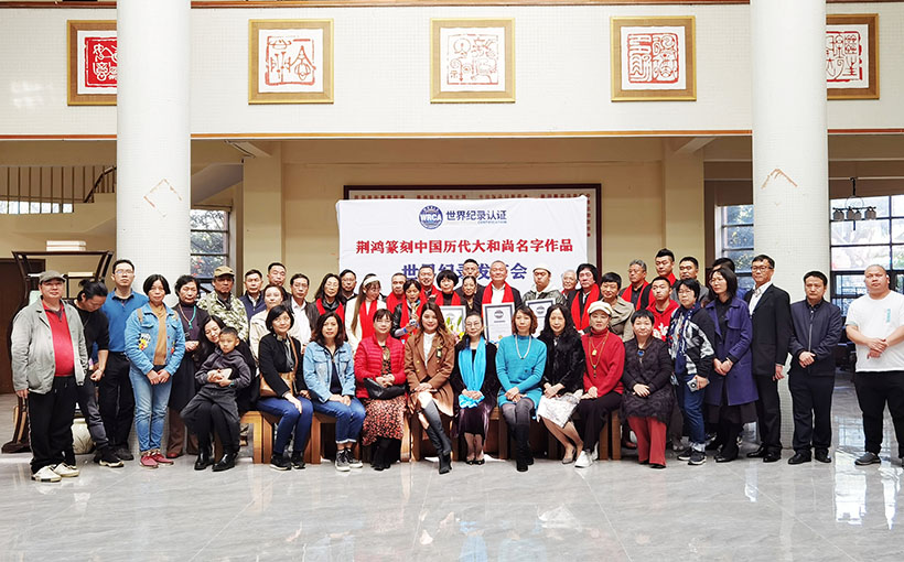 2022年1月21日,由荆鸿艺术馆、禅之路团队、中和人生等共同策划推动的“荆鸿篆刻17073枚中国历代大和尚名字作品世界纪录发布会在广州番禺荆鸿艺术馆举行,经世界纪录认证中心(WRCA)官方审核认证发布创下“数量最多的中国历代大和尚名字篆刻作品”世界纪录,这是中国人的骄傲,特别是在荆鸿老师逝世二周年纪念日认证并创造世界纪录,让中国文化走向世界,可喜可贺。