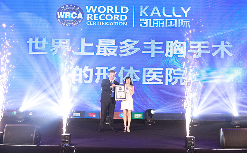 香港凯丽国际医疗集团有限公司于2014年6月1日至2021年4月30日期间共进行10,246台丰胸形体手术。2021年5月17日,经世界纪录认证(WRCA)官方审核,该公司成功创造“丰胸手术最多的形体医院”世界纪录。