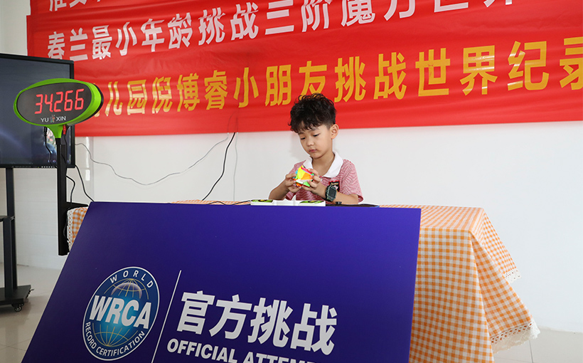 来自中国淮安市的倪博睿(出生日期:2016年9月21日)于2022年8月15日在淮安市成功还原三阶变幻金刚魔方,用时1分55.405秒。经世界纪录认证(WRCA)官方审核,倪博睿成功创造“最小年龄还原三阶变幻金刚魔方”世界纪录。