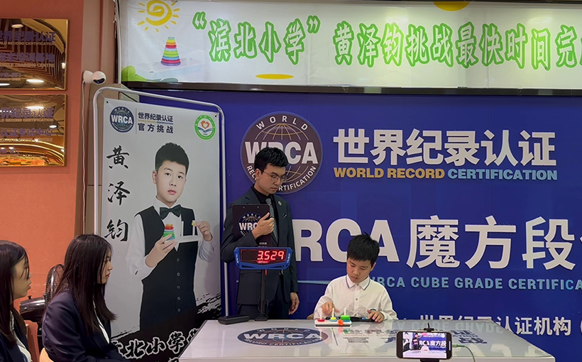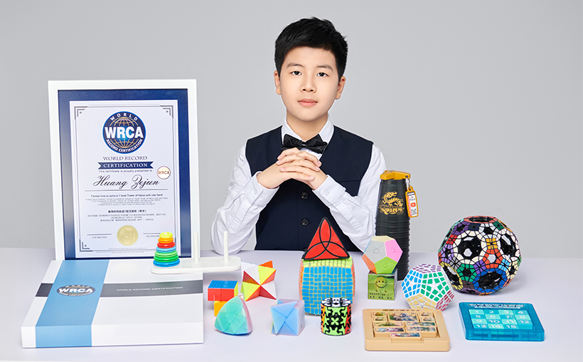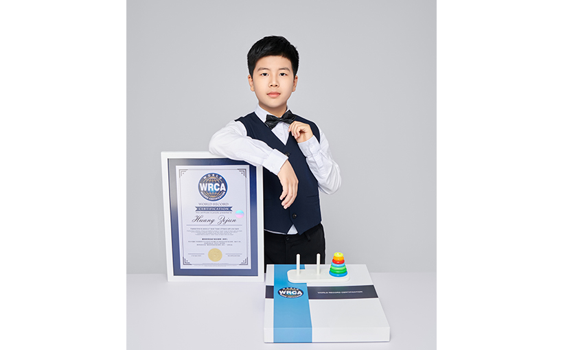 Huang Zejun (Xiamen, China) successfully solved a 7 level Tower of Hanoi with one hand in 47.6 seconds in Xiamen, China, on 19 April 2023. Verified by the WRCA, Huang Zejun successfully broke the world record for the "Fastest time to solve a 7 level Tower of Hanoi with one hand".