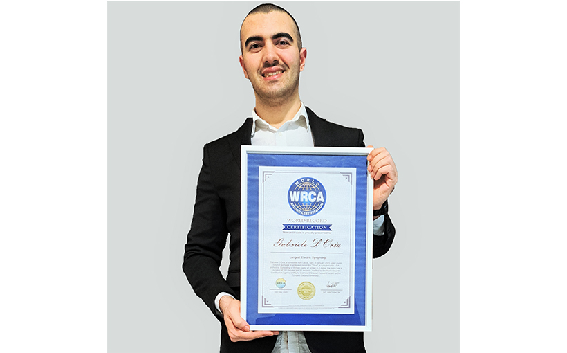 Gabriele D'Oria, a composer from Lecce, Italy, in January 2023, used music notation software to write and record the "Thud," a symphony for a full orchestra. Consisting of thirteen parts, all written in A minor, the piece has a duration of 100 minutes and 51 seconds. Verified by the World Record Certification Agency (WRCA), Gabriele D'Oria set the world record for the "Longest Electric Symphony".