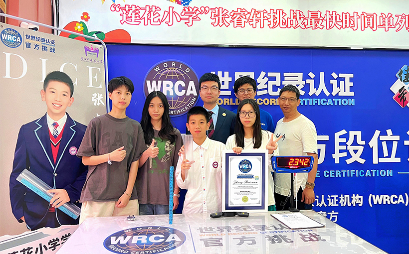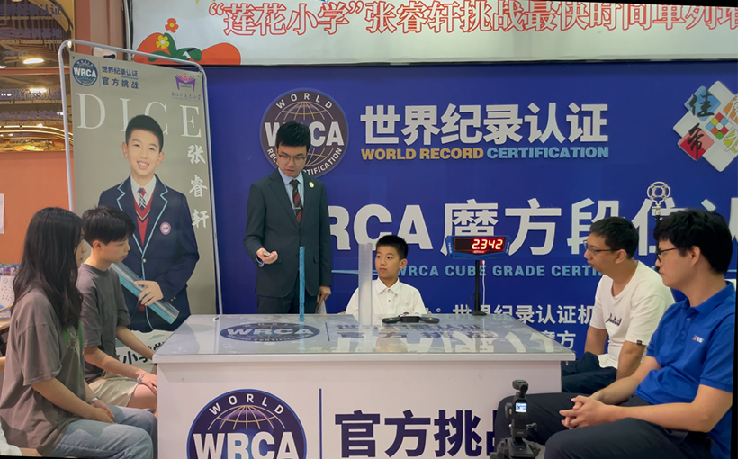 Zhang Ruixuan (Xiamen, China) successfully stacked 20 dice into a tower by shaking a transparent cup in 2.342 seconds in Xiamen on 31 May 2023. Verified by the WRCA, Zhang Ruixuan successfully broke the world record for the "Fastest time to stack 20 dice into a tower".