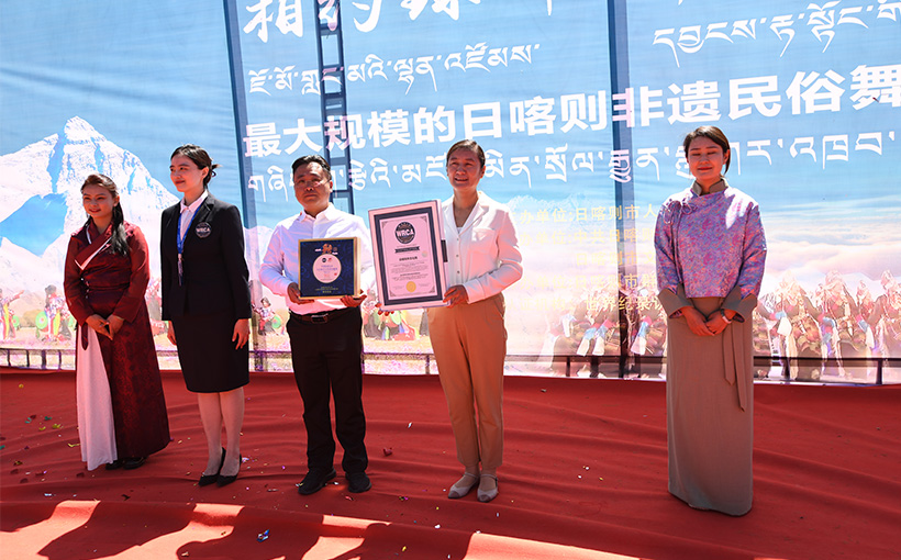 In the World Record Challenge hosted by Shigatse, Tibet Autonomous Region, China, the intangible cultural heritage event themed on "Stand on Mount Everest, enjoy thousands of heavenly chords" is held. A total of 1000 participants took part in the intangible cultural heritage of Shigatse folk dance performance. Verified by the WRCA, the event has set the world record for the "Largest performance of the intangible cultural heritage of Shigatse folk dance".