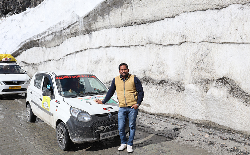 来自印度北方邦马图拉的马尼·拉杰·辛格,于2023年3月1日至4月11日自驾马鲁蒂奥拓型汽车游览了印度的28个邦和6个联邦属地,共历时42天。经世界纪录认证(WRCA)官方审核,马尼·拉杰·辛格(Mani Raj Singh)成功创造了“最快时间开车游览印度28个邦和6个联邦属地”世界纪录。