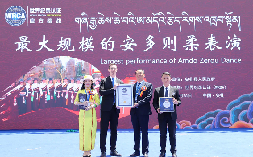 In the World Record Challenge hosted by the People’s Government of Jianzha County, Huangnan Tibetan Autonomous Prefecture, Qinghai Province, China, a total of 1370 individuals participated in the “Amdo Zerou Dance”. Verified by the WRCA, it has set the world record for the “Largest performance of Amdo Zerou Dance”.