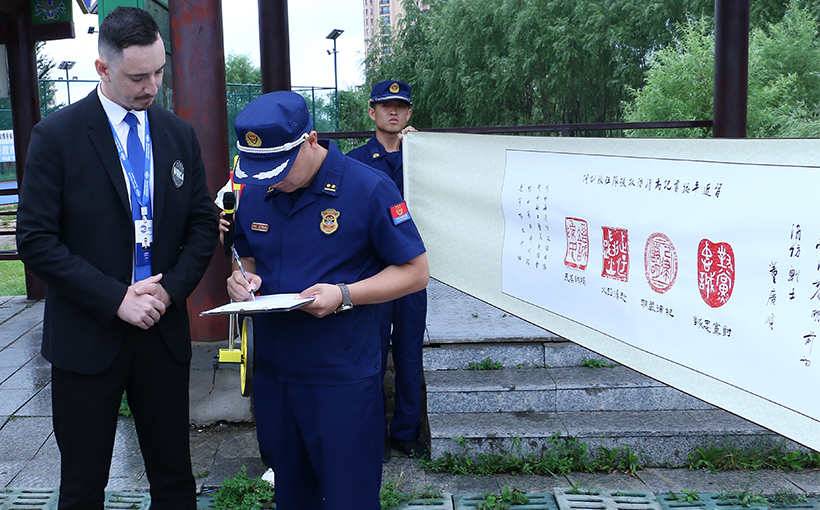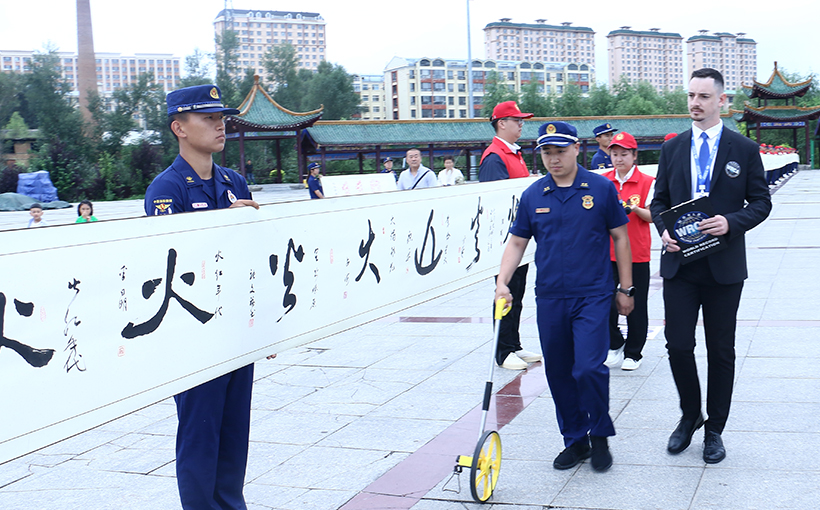 The calligraphy scroll, measuring 119 meters in length, was collaboratively created by Mingshui County Cultural Sports Radio Station and Tourism Administration, Mingshui County Fire Rescue Brigade, Mingshui County Arts and Crafts Association, and Mingshui County Seal Carving Art Museum. A total of 119 different fonts of the character "火" (fire) were written on the scroll. Verified by the WRCA, the work has been confirmed as the "Longest calligraphy scroll of the Chinese character '火' (fire)".