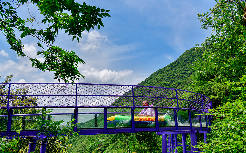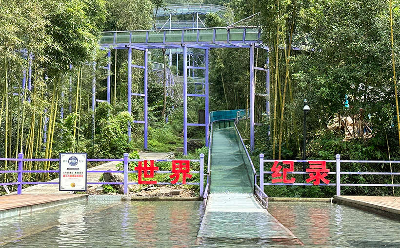 The water slide, located in Tianzidi Scenic Area, Tonglu County, Hangzhou City, Zhejiang Province, China, is 2,266.515 m long. The main structure of the slide is made up of glass. Verified by the WRCA, it has been recognised as the "longest glass water slide".