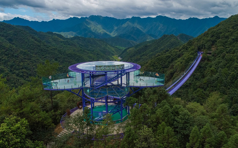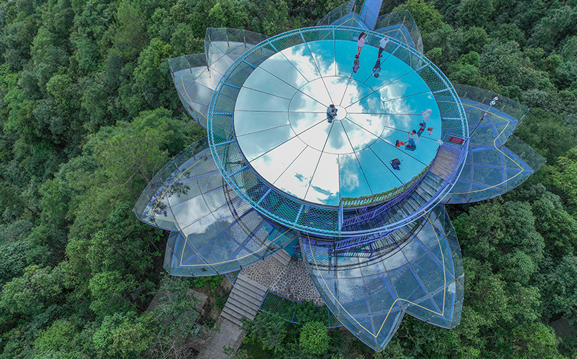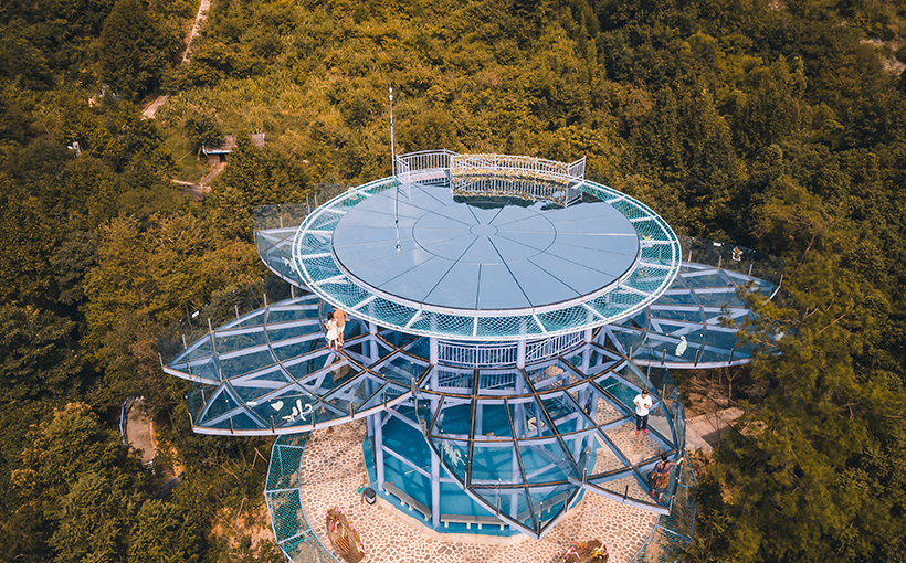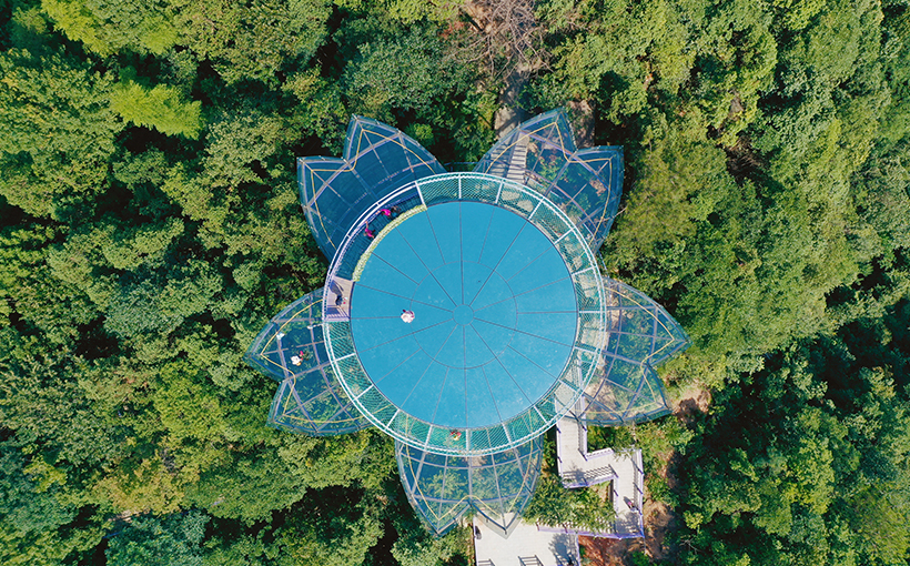 A two-story glass viewing platform, located in the Tianzidi Ecological Scenic Area in Tonglu County, Hangzhou City, China, covers an area of 502.273 m2. Verified by the WRCA, it has been recognised as the "largest two-story glass viewing platform".