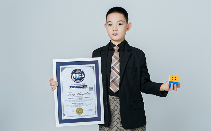 来自中国北京市的唐圣朝(出生日期:2015年2月16日)于2022年8月24日在北京市长安公证处左手单手盲拧还原二阶魔方,用时2分11.77秒(含记忆时间)。经世界纪录认证(WRCA)官方审核,唐圣朝成功创造“最小年龄左手单手盲拧还原二阶魔方”世界纪录。 纪录编号:WRC221031D