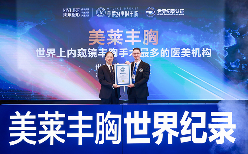 Mylike Plastic Surgery, a chain of three medical aesthetics institutions (Mylike Nanjing, Mylike Hangzhou, Mylike Tianjin), performed a total of 1,890 endoscopic breast augmentation surgeries from March 2018 to December 2023. Verified by the WRCA, the company successfully created the world record for the "Medical Aesthetics Institution with the Most Endoscopic Breast Augmentation Surgeries".