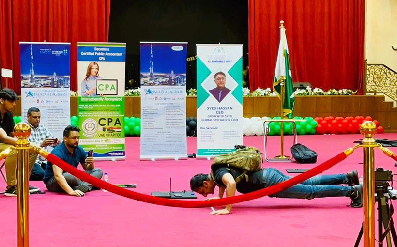 Ahmad Amin Bodla from Pakistan completed 534 one-legged push ups while carrying a 60 lb pack in one hour. This record breaking attempt took place at the Pakistan Auditorium in Dubai, UAE on 23rd February 2024. The event was conducted under the supervision of witnesses and record keepers. Verified by the World Record Certification Agency (WRCA), the achievement was confirmed as the "Most Push Ups One Leg Raised Carrying 60 lb in One Hour (male)".