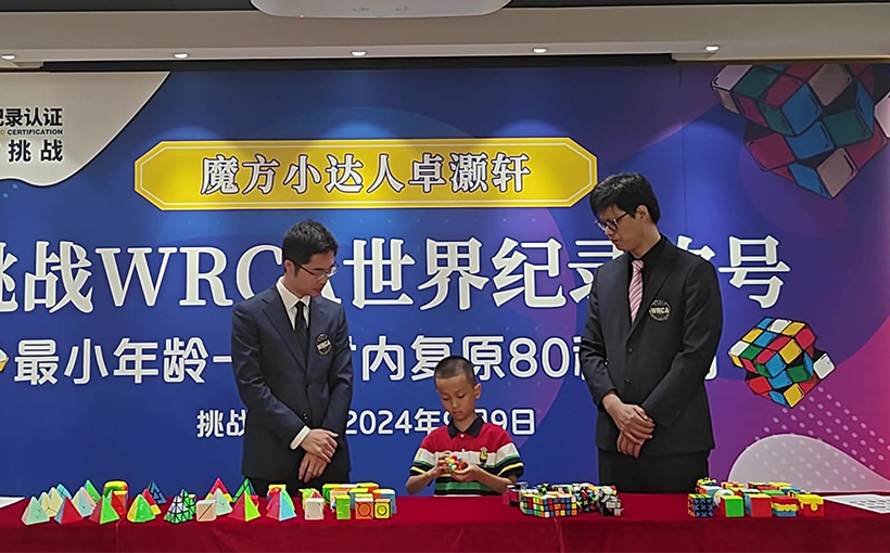 以上是“最小年龄一小时内复原80种魔方”的详细信息,您还可通过WRCA世界纪录认证官方网站或在百度中搜索纪录编号“WRC240802C”以获取更多相关资讯。