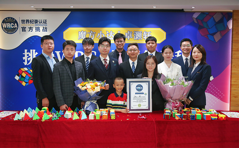 来自中国厦门市的卓灏轩(出生日期:2018年9月23日)于2024年9月9日在厦门市成功还原80种不同类型的魔方,总用时44分51秒。经世界纪录认证(WRCA)官方审核,卓灏轩成功创造“最小年龄一小时内复原80种魔方”世界纪录。纪录编号:WRC240802C