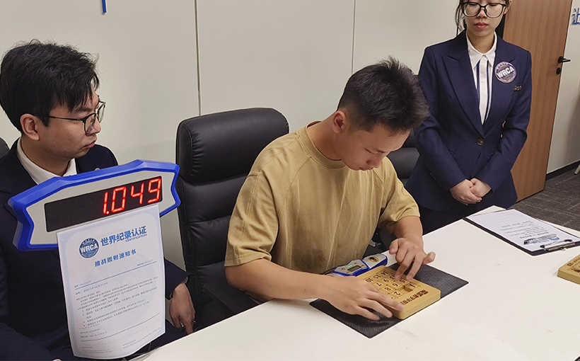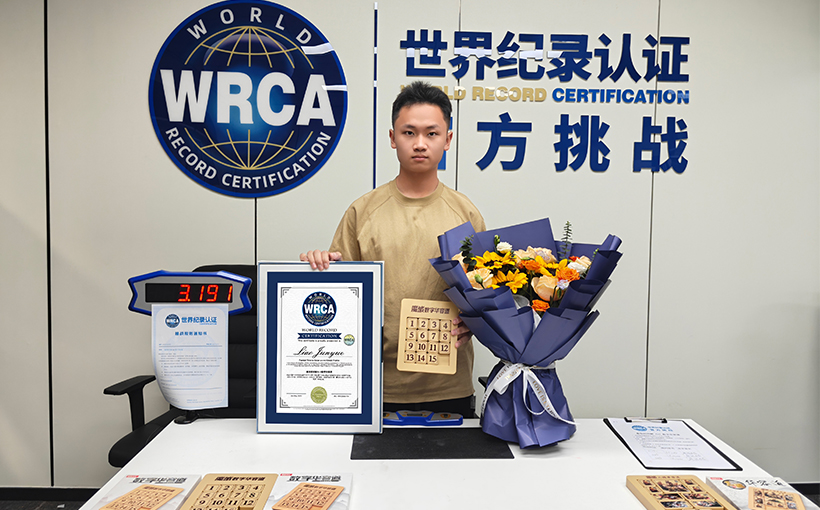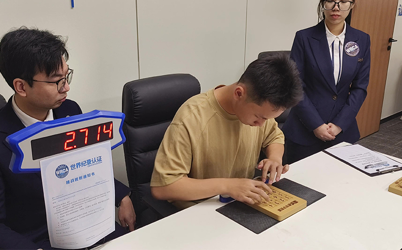 Liao Junyue (Guangzhou, China) successfully solved a randomly scrambled 4×4 Klotski puzzle in 3.191 seconds in Xiamen, China, on 13 April 2025. Verified by the WRCA, Liao Junyue successfully broke the world record for the "Fastest Time to Solve a 4×4 Klotski Puzzle".