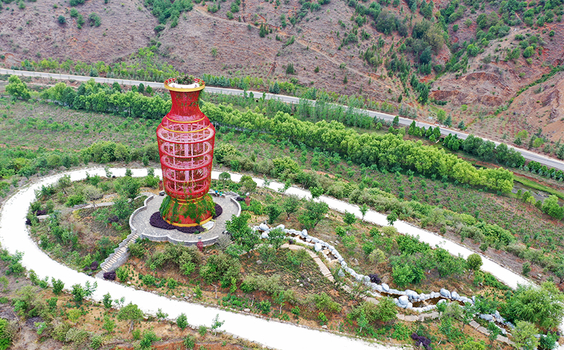 The steel vase structure in the Flower Road World theme park, Kunming, Yunnan, China, is 24.1 meters high. The diameter of the structure is 9 meters, which has been recognized by World Record Certification Agency officials on-site as the the largest steel vase-shaped structure in the world.
