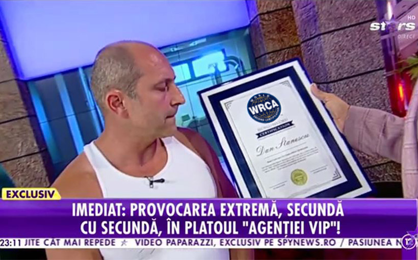 On the 26th of June 2019, Dan Stanescu completed 1260 push ups in 30 minutes on the television show Antena Stars, setting the world record for most push-ups performed in 30 minutes.