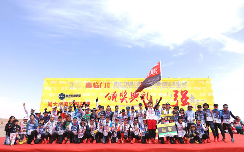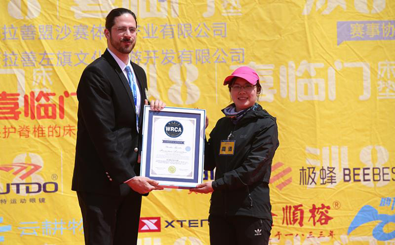 在阿拉善左旗亚沙运动促进会发起的喜临门杯“第八届亚太地区商学院沙漠挑战赛“活动中,由2592名挑战者参与在腾格里沙漠徒步挑战。2019年4月23日经世界纪录认证(WRCA)官方工作人员现场审核,该活动被确认为“ 最大规模的沙漠徒步挑战赛”世界纪录。