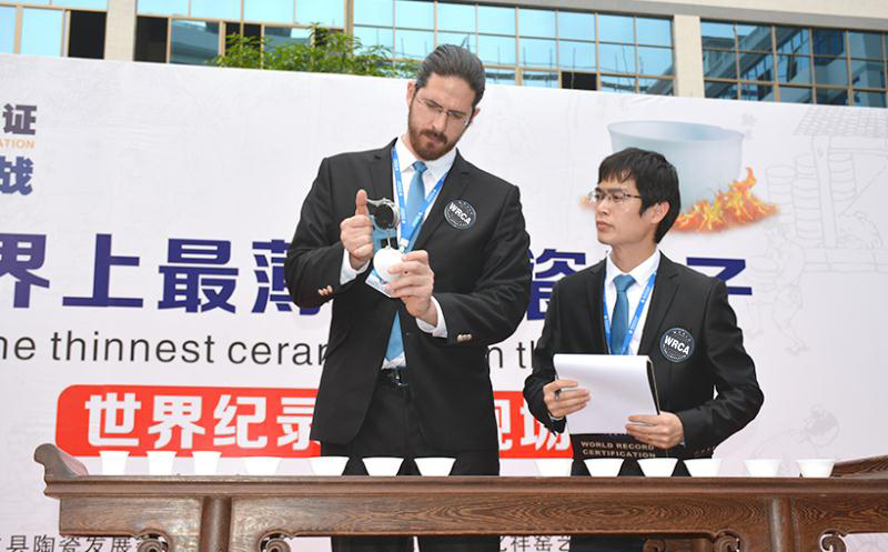 The ceramic cup, developed by Chen Qingyi (Dehua, China), is made of pure Dehua ore material, and has extremely thin walls less than 0.6 mm. Certified by the World Record Certification Agency official staff on-site, the cup has been recognized as the world’s thinnest ceramic cup.