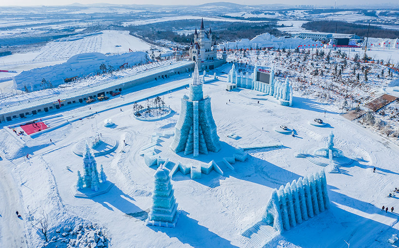 长春冰雪新天地坐落于长春市莲花山生态旅游度假区冰雪大路与泉眼大街交会处,总占地面积138万平方米,今年景区建造独立景观共142座,其中的“盛世之歌”塔、“激情大滑梯”、以“梦幻西游” 场景为原型的冰雪景观等,都堪称“刷屏网红”。2022年,同时获得“世界最长的冰滑梯(激情大滑梯)”、“世界最高的火炬冰雕(盛世之歌塔)”、“最大规模冰雪主题健身操(多场地)”三项世界纪录,让冰雪新天地成为焦点。