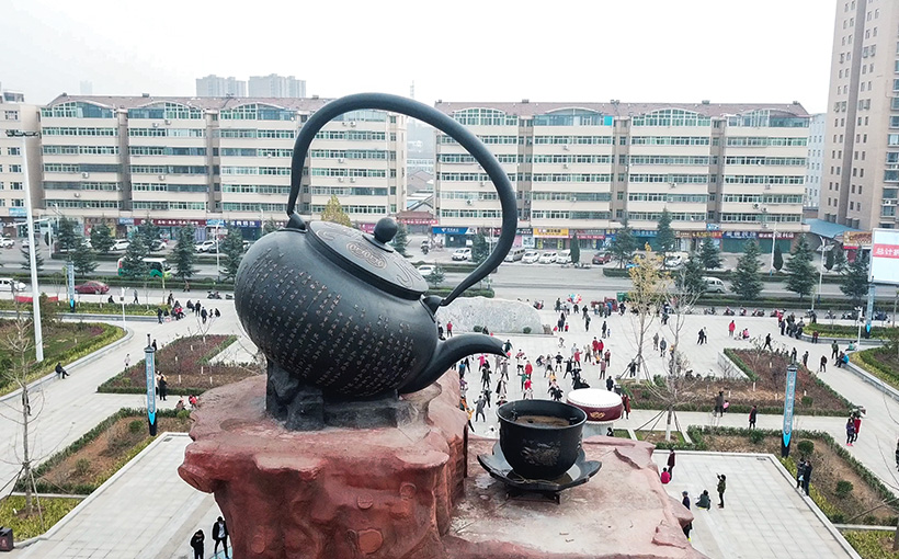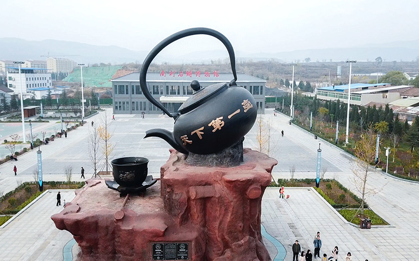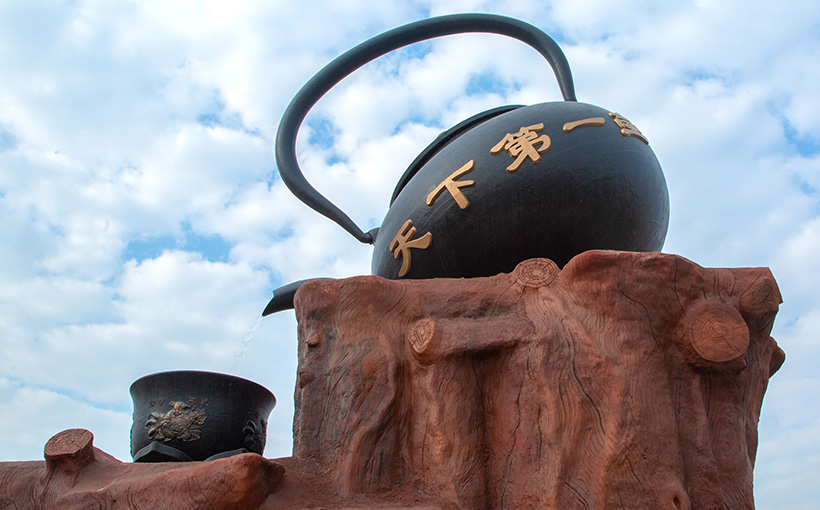 位于中国山西省晋城市南村镇“中国南村冶铸文化广场”内的“天下第一壶”铸铁茶壶雕塑,由中国山西省晋城市南村镇人民政府筹资,运用传统铸造工艺一次性浇铸成型的铸铁茶壶,壶体总高965cm(含壶把),直径703cm,壶壁厚度8cm,壶体容积125.6m?,壶体重达134.5T(含壶把、壶盖)。经世界纪录认证(WRCA)官方审核,被确认为“世界最大的铸铁茶壶”。