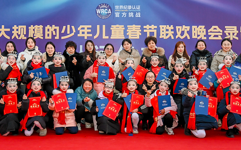 The Jiangsu Children's Spring Festival Gala, organized by Jiangsu Xingtong Culture and Art Development Co., Ltd., was recorded from January 25 to February 3, 2024, with a total of 12071 children participating. Verified by the WRCA, the event successfully set the world record for the "Largest Number of Participants in the Children's Spring Festival Gala Recording".