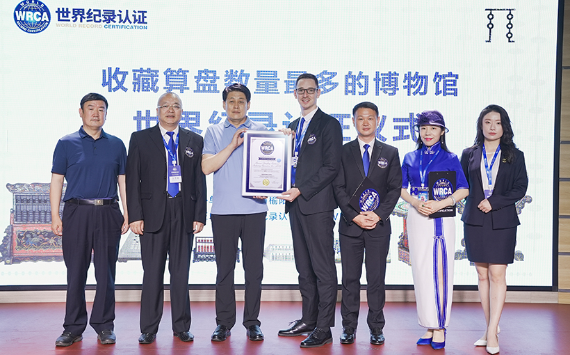 在历时8个月的前期工作后,2022年6月26日,WRCA世界纪录认证团队在为期三天的现场审核以及细致严谨的现场核验后,最终认定中国算盘博物馆为收藏算盘数量最多的博物馆,共计18888件算盘藏品。WRCA驻华申报中心主任、中国区总负责人赵青太为中国算盘博物馆馆长、西安榆阳商会会长、区工商联名誉主席赵占明颁发世界纪录认证证书。