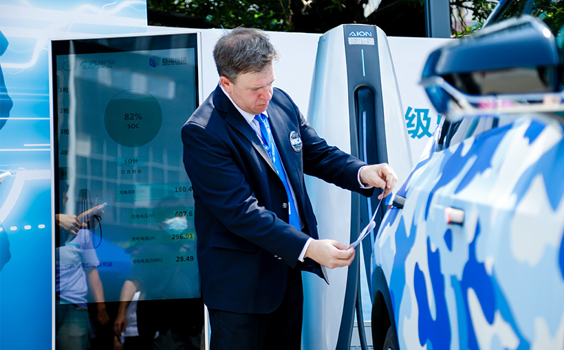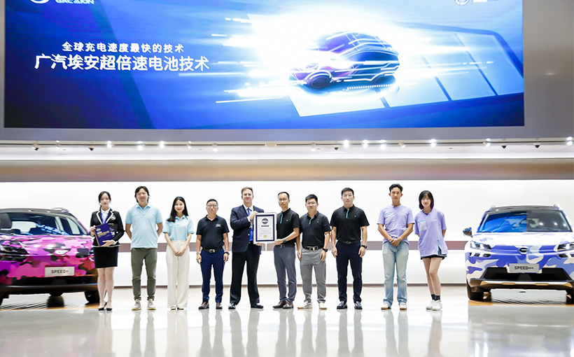 2021年8月30日,广汽埃安举行线上发布会,正式对外发布了能够实现“充电5分钟,续航200公里”的超倍速电池技术和全球充电功率最高的A480超充桩。同天举行的,还有“全球最快充电速度世界纪录挑战”全网直播。来自全国的顶级专家、主流媒体以及网友,共同见证了“纯电动车充电速度最快世界纪录”的诞生。