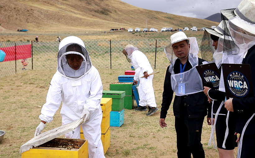 The artificial apiary owned by Tibetan Peak Tribute Bee Honey Products Co., LTD. located in Gongga County, Shannan City, Tibet Autonomous Region of China, is 4,480 meters above sea level. Verified by the WRCA, the apiary was confirmed as the "World's highest altitude apiary".