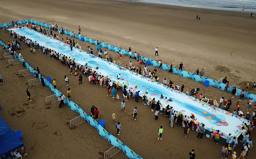 随着最后一抹色彩的落笔,小鱼儿们成功完成“最大的海洋保护主题儿童绘画”世界纪录挑战。这是由近300位小鱼儿业主在舟山海滩共同绘制的共绘海洋长卷。小鱼儿们化身小小艺术家,大胆放飞创意,尽情释放对大海、对海洋生物的无限热爱。每一笔,都是想象力和美好祝愿的萃集。小鱼儿们,将心目中理想海洋的样子呈于纸上,用童心助力公益。