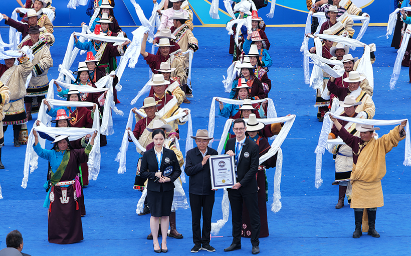 The Official World Record Challenge, initiated by the People’s Government of Gonghe County, Hainan Tibetan Autonomous Prefecture, Qinghai Province, China, involved a total of 200 participants performing a Tibetan love song duet by the shores of Qinghai Lake. Verified by the WRCA, the event successfully set the world record for the “Largest Tibetan Love Song Duet Performance”.