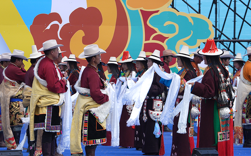 拉伊作为国家级非物质文化遗产,被赞为“高原上的爱情史诗”。其歌词为即兴创作,通过比兴手法传达爱慕之情。此次200人在青海湖畔同场对唱,让许多本地牧民群众和省内外游客欣赏到了非遗的强大生命力。安多藏族服饰以羊皮、氆氇为主要材质,融合玛尔丹、嘉隆等配饰,形成“厚重华美”的视觉风格,一套完整的服饰往往凝聚着匠人数月的心血。