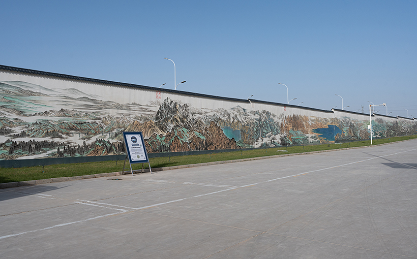 Initiated by Shi Jianguo, Chairman of Hebei Qishi Education Group, and led by Cai Mishu and Zhang Xin, artists Ren Xiaoliang, Zhang Jianxue, Wang Yongping, and Zhao Shitong created a traditional Chinese landscape mural titled Magnificent Xinjiang, Splendid Motherland on the inner wall of Qishi School in Korla, Bayingolin Mongolian Autonomous Prefecture, Xinjiang, China. The mural measures 888 meters in length and 5.5 meters in height. Verified by the WRCA, it has been confirmed as the “Longest Landscape Mural in Traditional Chinese Painting Style”.