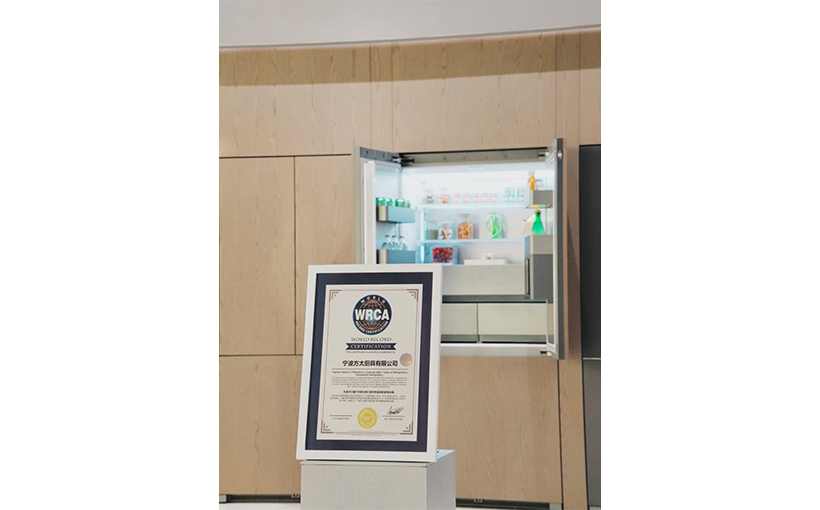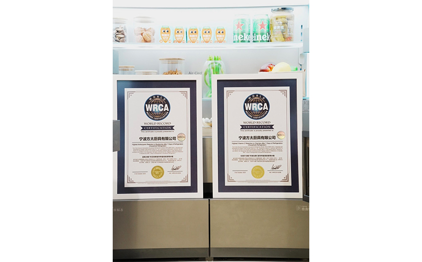 由宁波方太厨具有限公司设计研发的方太二代家用冰箱(型号:BCD-508W-X20.i),在7天测试周期后,冷藏于氮气保鲜舱中的车厘子维生素C留存率达99.7%。经世界纪录认证(WRCA)官方审核,被确认为“车厘子冷藏7天维生素C留存率最高的家用冰箱”。纪录编号:WRC251025B
