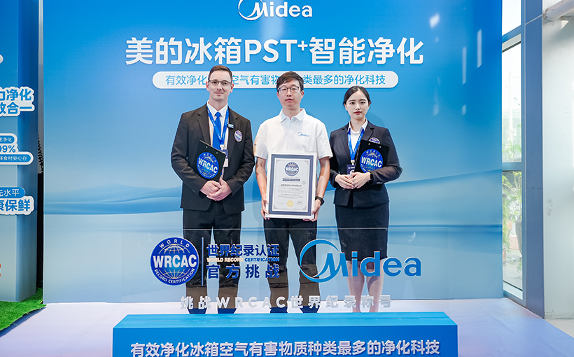 由美的冰箱研发的PST+智能净化技术,应用于冰箱内部空气净化,世界纪录认证官方审核共99种有害物质可有效去除,涵盖病毒、病菌、霉菌、农残、乙烯、异味等,被确认为“有效净化冰箱空气有害物质种类最多的净化科技”。纪录编号:WRC260319A
