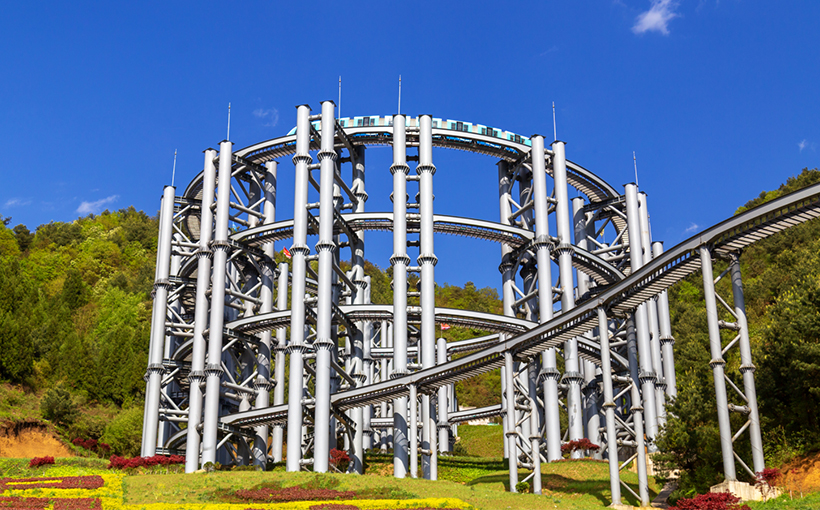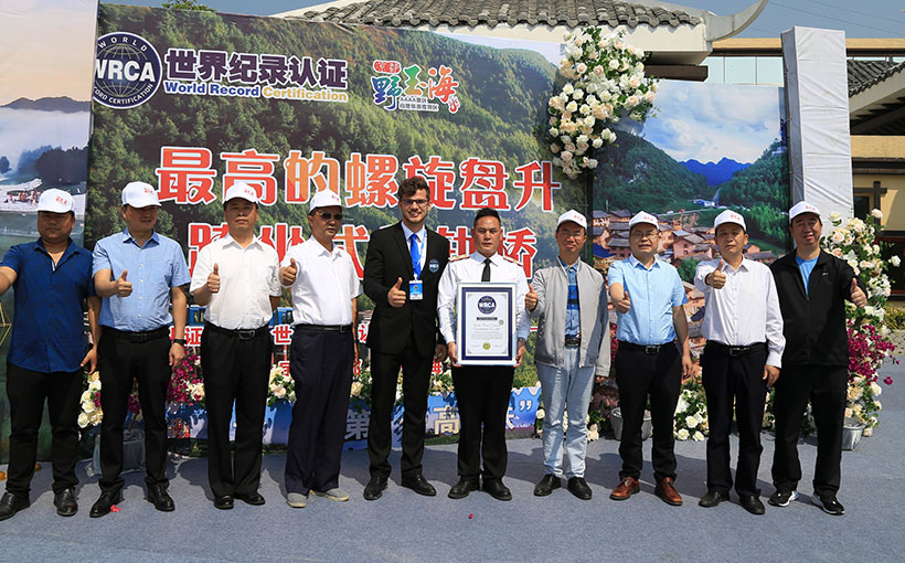 由株洲中车特种装备科技有限公司设计建造的单轨铁路项目,建于野玉海景区内的观光小火车,游览专线轨道全长约 11 千米,全程高差为220米。单程长5.2千米,全部应用架设钢梁结构,其中螺旋观景段、轨道钢梁圆形直径为60米、坡度为6%、坡长720米为三层半螺旋式结构、立柱高达47米。2019年4月27日,经世界纪录认证(WRCA)官方人员现场核实,该景区螺旋观景段轨道被确认为“最高的螺旋盘升跨坐式单轨桥”。