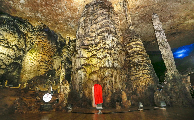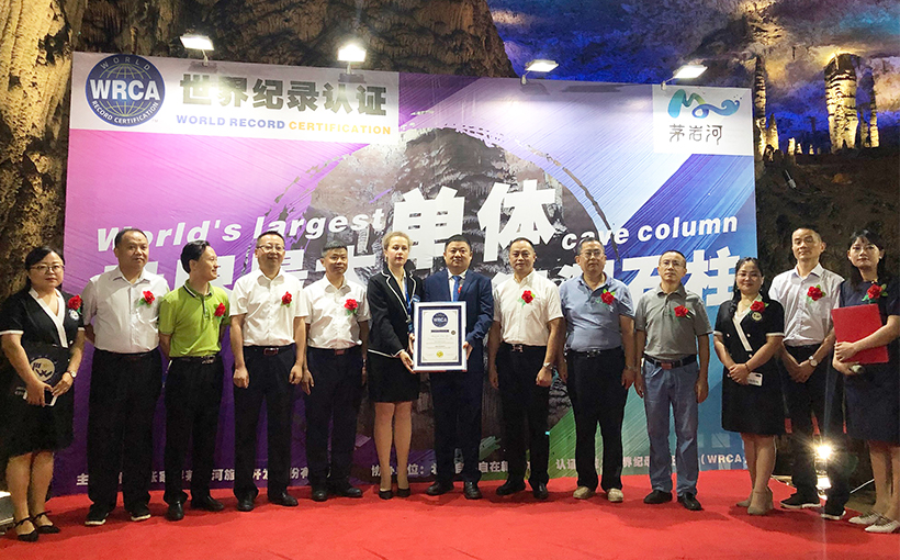 A cave column formed by a stalactite is located in Jiutianxuannv Cave, Maoyanhe Scenic Area, Zhangjiajie, China, with a height of 12 meters and a circumference of 21.5 meters on the floor. Verified by the World Record Certification Agency, it has been confirmed as "the world's largest cave column".
