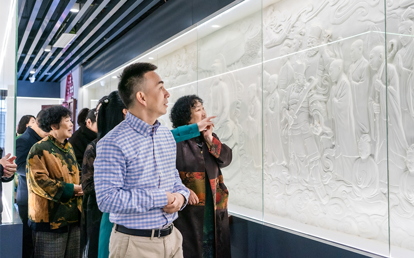 本次通过世界纪录认证的作品《佛陀传奇》位于盘龙古寺汉白玉舍利塔二层内,由德化瓷烧制技艺代表性传承人、德化工艺美术大师陈建评主创而成。陈建评介绍,该项目将采用分割方式完成创作,总共要将瓷板分割成大小51幅场景分别烧制再无缝拼接,其中最大的一幅要达15平方米,拼接安装最大的一面长11米,宽1.6米。