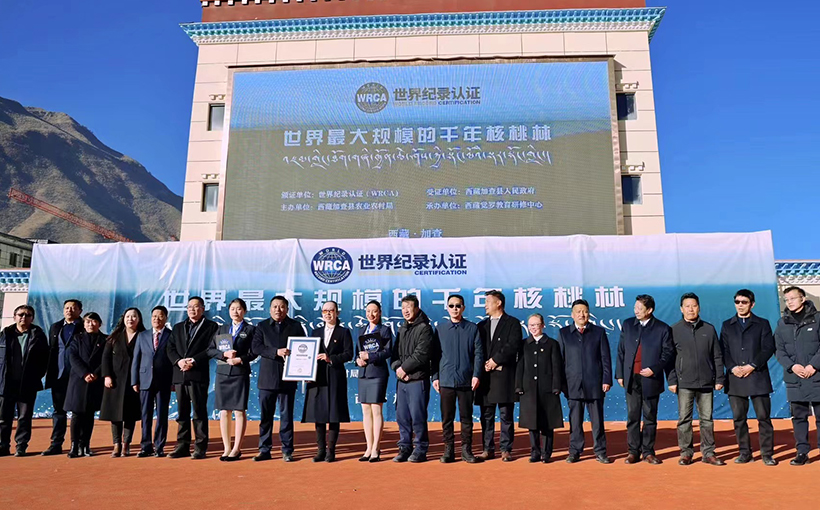 Located in Jiacha County, Shannan City, Tibet Autonomous Region of China, the total area of walnut trees planted in the county is 30.67 square kilometers, the number of walnut trees planted in continuous groves with an age exceeding 1,000 years is 3,657. Verified by the WRCA, it has been confirmed as the "Largest number of thousand-year-old walnut trees in a forest".